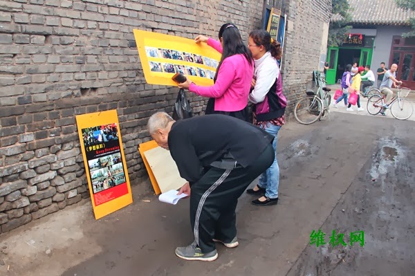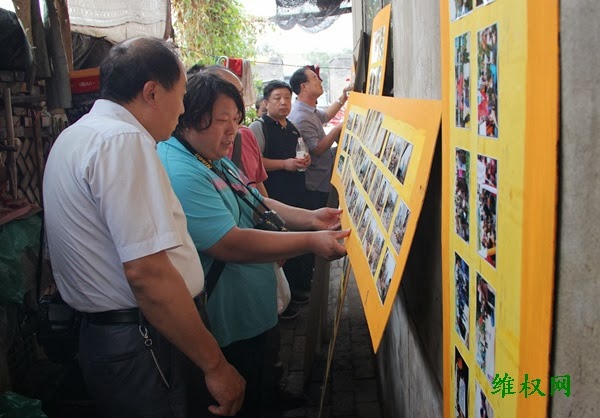 “昨天一直有七八个人在我展览现场附近盯梢,平遥作家赵村林给我的题字‘关注民生的图片更可贵’,在我不留神的时候被偷走。为提供展览场地的房东生命财产安全计,我只好像做贼似的悄悄引导慕名前来的观众到房东家的走廊上观看贴在展板上的照片。”