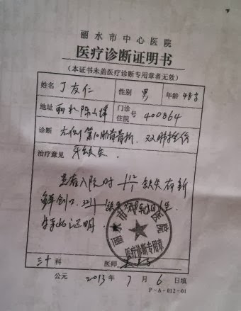 图2:丁友仁的诊断证明