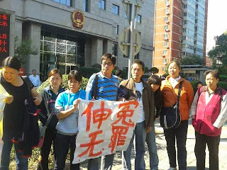据悉,专程抵京“开庭”声援在押冤民的石立琴、谢小珍、张秀屏、陈茂妹、贺清敏、林苗捷、吴京等福州冤民,今天早上一起到北京朝阳区法院上访,被告知今天根本没开庭,而且案件还未进入审判程序!为此,石立琴等冤民随后又到朝阳区检察院和看守所了解有关案件相关情况,但未果,接着他们就在北京街头集体喊冤维权!