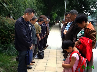今天是头七,远隔成都几千里外的夏俊峰家人给他举行隆重葬礼,而成都近二十多名弱势市民默哀为他送行。在这些弱势市民中,年龄最大的近80岁,小的有二岁多。六四遇难母亲唐德英,她儿子被打死二十多年尸骨无存;王蓉文家被强拆,父母被逼而死;邓品芳房屋被强拆,财产被毁,弟弟被逼疯致死,自己多次上访被冤入狱;而新都区新繁镇家被强拆的景永江,他被村长陷害刚刚出狱;多次上访被关被打的青羊区访民何艾芩和她二岁多的女儿也参加了这一仪式……正因为他们都不同程度受到公权力的伤害,于是才有对夏俊峰同病相连的同情。