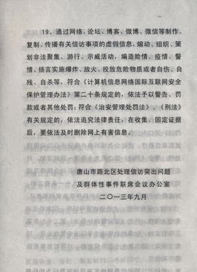 以下是访民无意中得到的唐山市自己的打压访民的“大法”