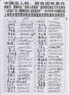 (维权网信息员任泉报道)上海235名维权民众(只是冰山一角,多数是土地房屋被强抢掠夺后无家可归、无生活来源、无生命健康权、诉控无门。专制制度里的警察们不把抢劫团伙捉拿归案,而把受害者送进牢房,被关黑监狱、被强迫失踪、甚至被自杀)联名,强烈要求联合国人权理事会为上海维权人士陈建芳“被阻止出境”和北京维权人士曹顺利“被阻止出境强迫失踪” 事件进行紧急呼吁,必须的调查和救助行动,并对案件发布公开声明(还应调查追究侵权者的法律责任)。