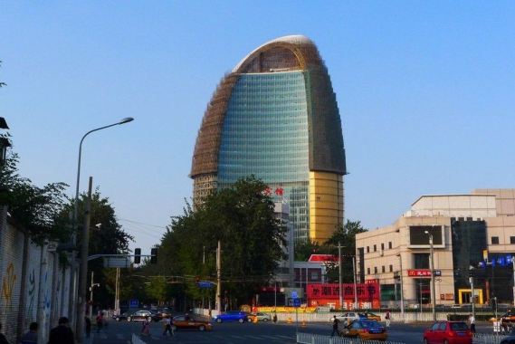 由于大楼顶端仍在建设中,一个外罩罩在建筑的顶端,加之下部的曲线形部分,大楼整体外形类似男性的生殖器遭到了网友的调侃。