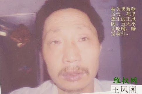 在黑监狱里,五天五夜没给他们三人吃喝,并且不让睡觉,看他们眯眼睛就用木棒打他们的脚踝骨。王凤阁被关12天黑监狱体重掉了23斤,当把他们折磨到生不如死的时候,逼迫他们三人签下了卖地合同和永不上访的保证书。