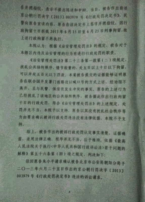就这样一个荒唐的处罚决定,却被朝阳区法院认定为:“处罚事实清楚,证据确凿,适用法律正确,程序并无不当,应予维持”。