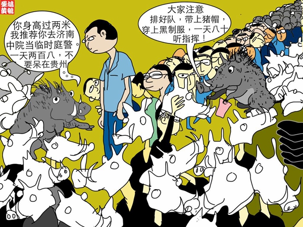 - @变态辣椒:印象之三:在问询室经常要坐等警察蜀黍离开去忙别的事,我就无聊支起耳朵听八卦,外面似乎抓到一窝赌徒,有个警察问得很仔细,赌资带了多少,是玩的什么,赌徒们争先恐后传授赌技,我感觉蜀黍的赌技一定连升三级,我也跟着涨了不少姿势。