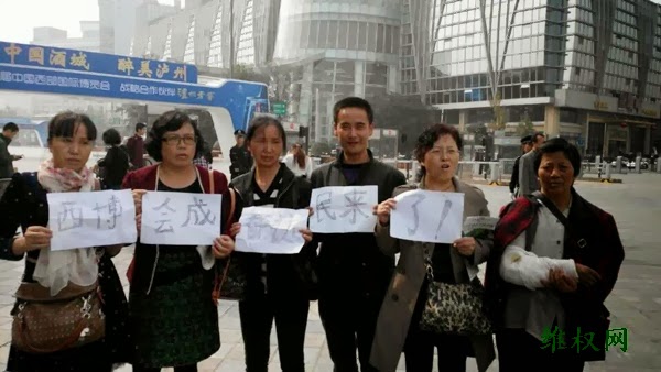 在这之前的10月18日,曾绍梅、陈伦珍、李廷惠、周成群进京上访被截回成都,刚下火车就被各地政府强制带走“旅游”。曾绍梅被接回后,由维稳人员跟踪监控中,她们都被拒绝参加“西部博览会”。