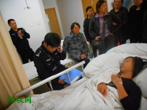下午五点多,一位警察和一位协警来到蒋雪华的病房,来了解报警的情况。蒋雪华强打精神,控诉常州市警方抓走准备为其募捐的维权人士。蒋雪华讲到自己在维权过程中被抓,在关押期间要求治疗疾病被拒绝,导致病情恶化时,闻者无不伤感。王小俐离开常州市中医医院时依然有警察对她跟踪。