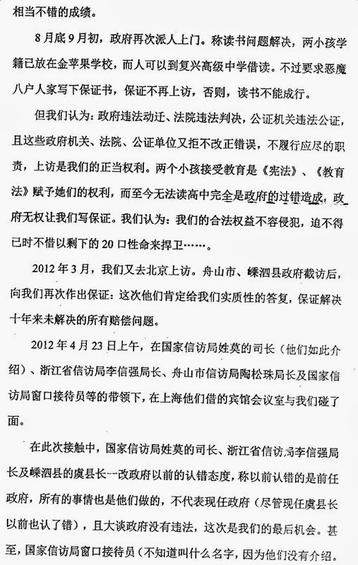 夫妻二人明白了,国家信访局的人去县里,一定是受到了地方政府的极好招待,回来就删除了他们的信访记录。没有了数百次的信访记录,对地方的官员来说也是个不小的政绩。