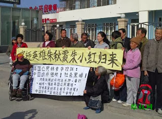 朱小红姊妹四人在北京已被刑拘。其中,朱小红与朱秋霞被判刑5个月。这是一起明显的冤案。朱家姊妹在联合国门前喊口号,何罪之有?朱小红和朱秋霞案,在开庭前,没有通知家属。判决后才收到判决书,已经过了上诉期限,其实质是剥夺了朱小红家属代为聘请辩护人的权利。
