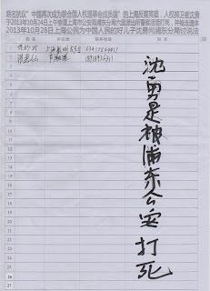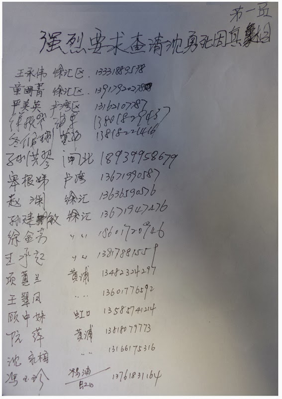 与沈勇一起参与联名的217名上海公民,再次签名:希望国内外正义人士关注217位联名抗议“中国再次成为联合国人权理事会成员国”的上海公民的人身安危。防止再次发生人权捍卫者被打死事件。