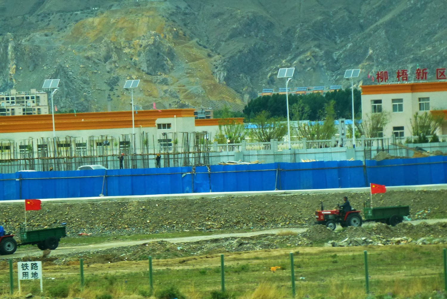 6月27日下午3点半,火车进入拉萨。首先注意到的是插着中国国旗的藏人拖拉机队。
