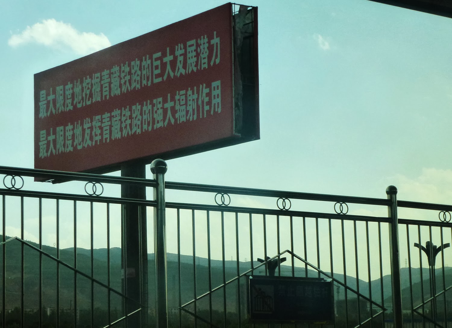 西宁火车站的标语牌,两个“最大限度”有一种竭泽而渔的味道。