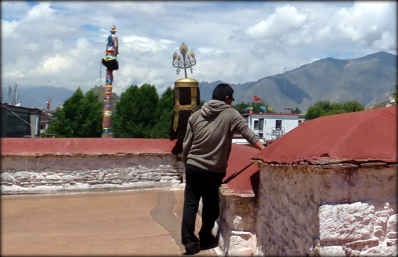 “拉萨老城保护工程”的成果之一,是在饱经千年沧桑的大昭寺,无比醒目地插上血红色的中国国旗。是的,谁都明白,这意味着什么。