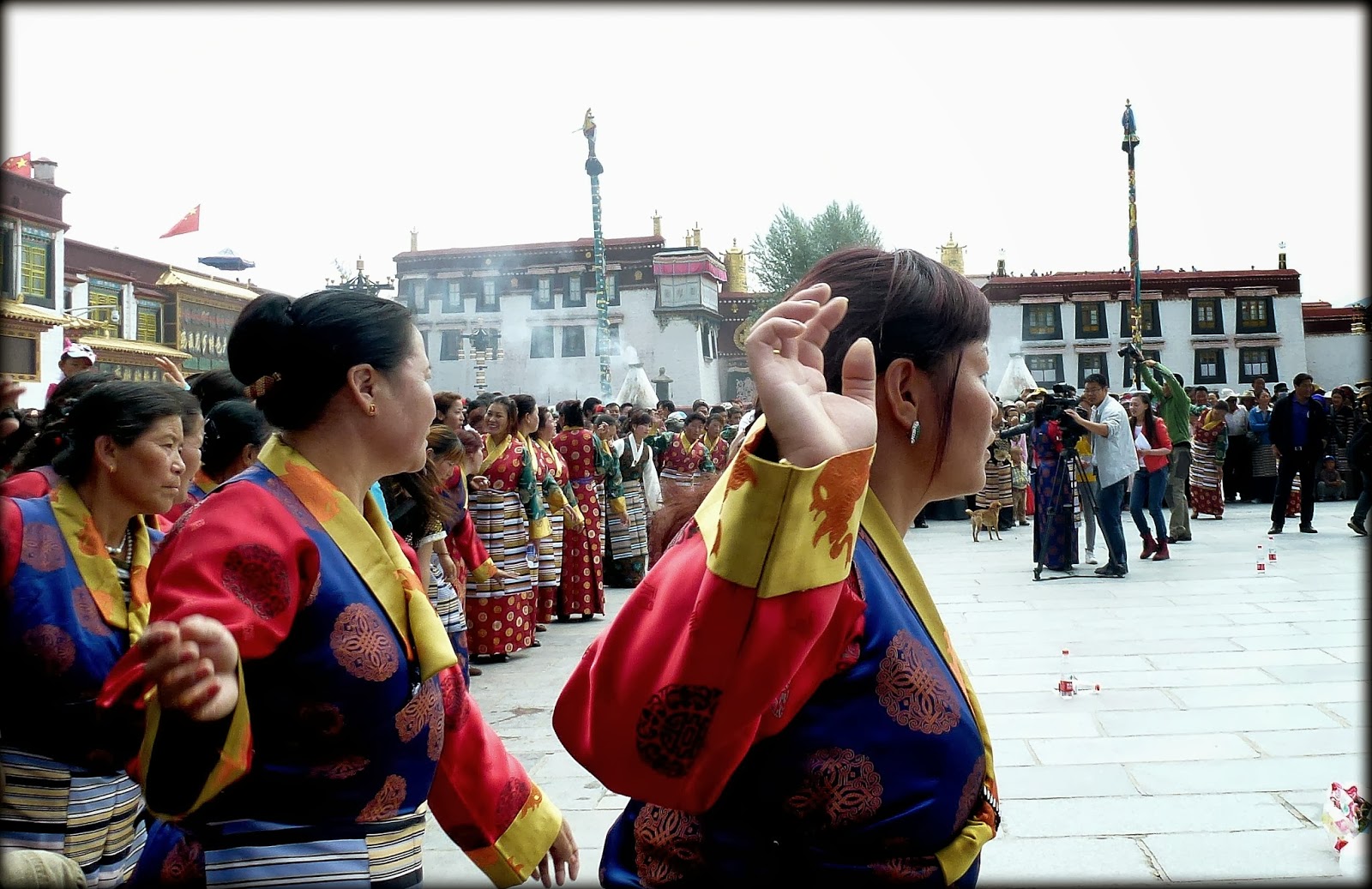 穿着公款定制的绚丽藏装犹如制服,这些扮演幸福状的阿佳啦(大姐),正一圈又一圈地载歌载舞,目的是让端着各式摄像机的喉舌们,精心准备忽悠世人的视听节目。