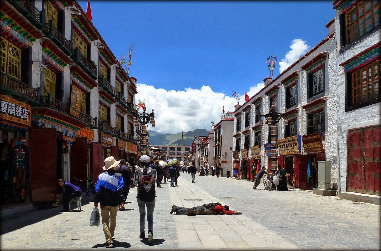 我在5月间写的《我们的拉萨快被毁了!救救拉萨吧!!》一文中所写的成为现实:“原本有着宗教意义的帕廓不会就此变成空空荡荡的街,却会变成专为游客而存在的熙来攘往的街,但不再是藏人转经朝圣磕长头的街了,即便有磕长头的朝圣者,也是给游客助兴的背景……”