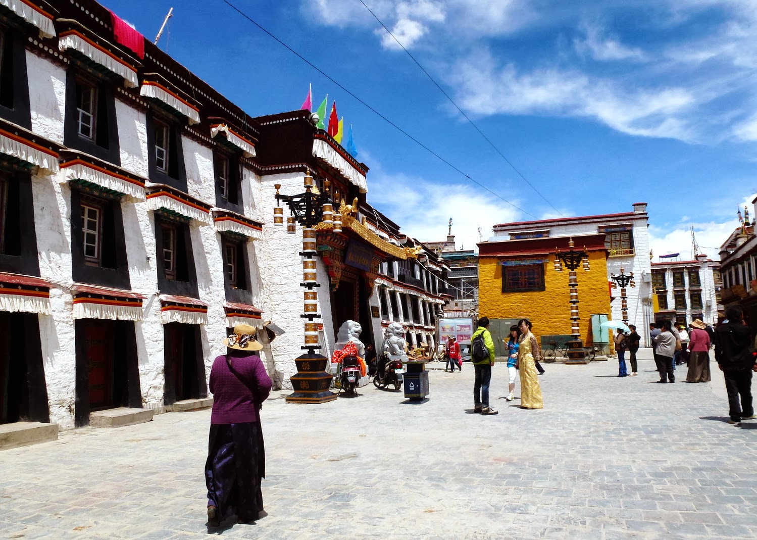 去年5月27日,两个安多青年在大昭寺与八廓街派出所之间的帕廓转经路自焚,而在自焚前夕他俩投宿与大昭寺南面相对的满斋饭店(即照片左侧的藏式建筑)。故当局迁怒满斋饭店,不但将开饭店的老板夫妇与门口的保安抓捕,而且还没收了满斋饭店的全部财产,不久将其改设为“拉萨市八廓古城管理委员会”,八廓派出所也立即升级为“八廓古城公安局”,甚至拉萨老城也被命名为“八廓古城”,借此开始了轰轰烈烈的大规模老城改建,其实是一石二鸟,更有“维稳”的目的和安排。