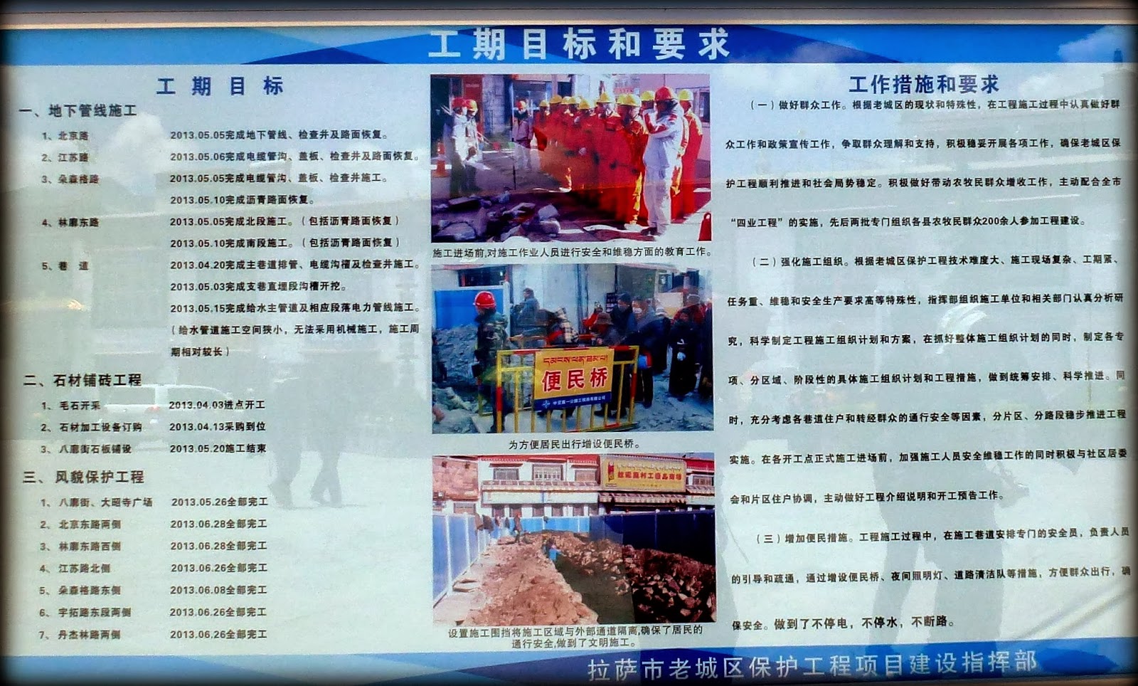 摆在大昭寺广场上的众多牌子图文并茂地介绍党和政府及领导们如何规划和建设“拉萨老城保护工程”。