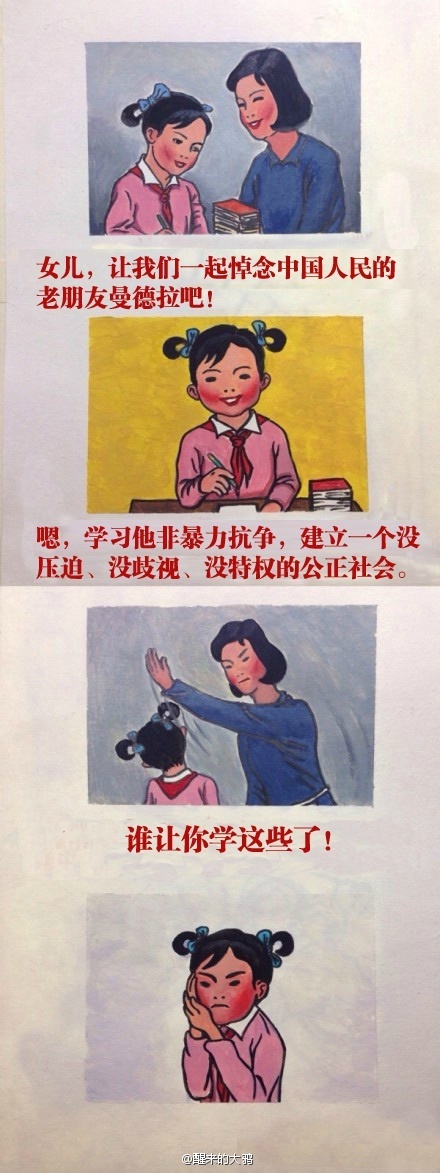 12月初,一张名为“妈妈再打我一次”的四格漫画图片在网络爆红,被微博及其他社交网站热传。其中妈妈打女儿耳光的图片以及母女间的对话引发网友疯狂转载。很多网友受此启发,将“妈妈再打我一次”图片衍生出众多搞笑版本。其中有不少网友制作出讽刺时政的“五毛版”、“曼德拉版”。