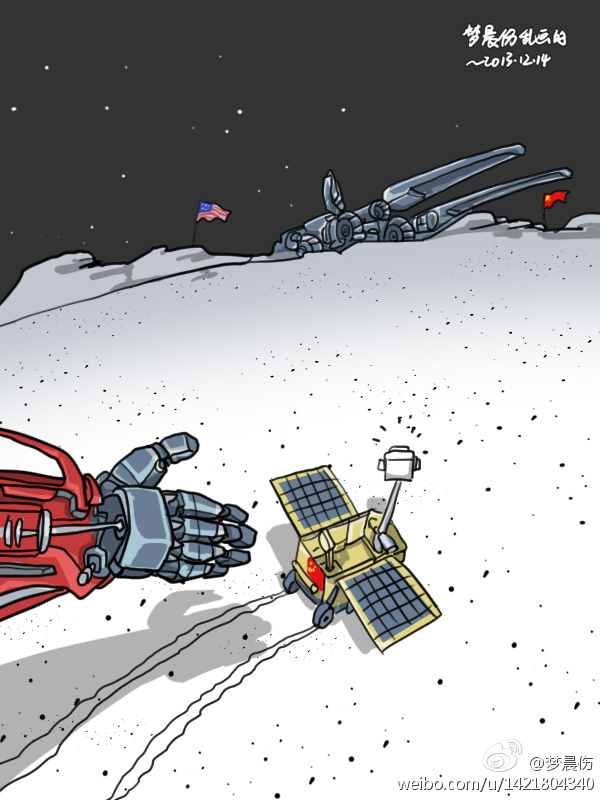 12月14日,中国嫦娥三号月球探测器在月面预选着陆区域成功着陆,中国因此成为世界上第三个实现地外天体软着陆的国家。中国航天计划的新进展得到了官方媒体大篇幅报道,似乎增加了不少民众“大国自信”与“民族自信”,不过也有网友指出中国航天成就的大步走与糟糕的民生现状形成鲜明讽刺。