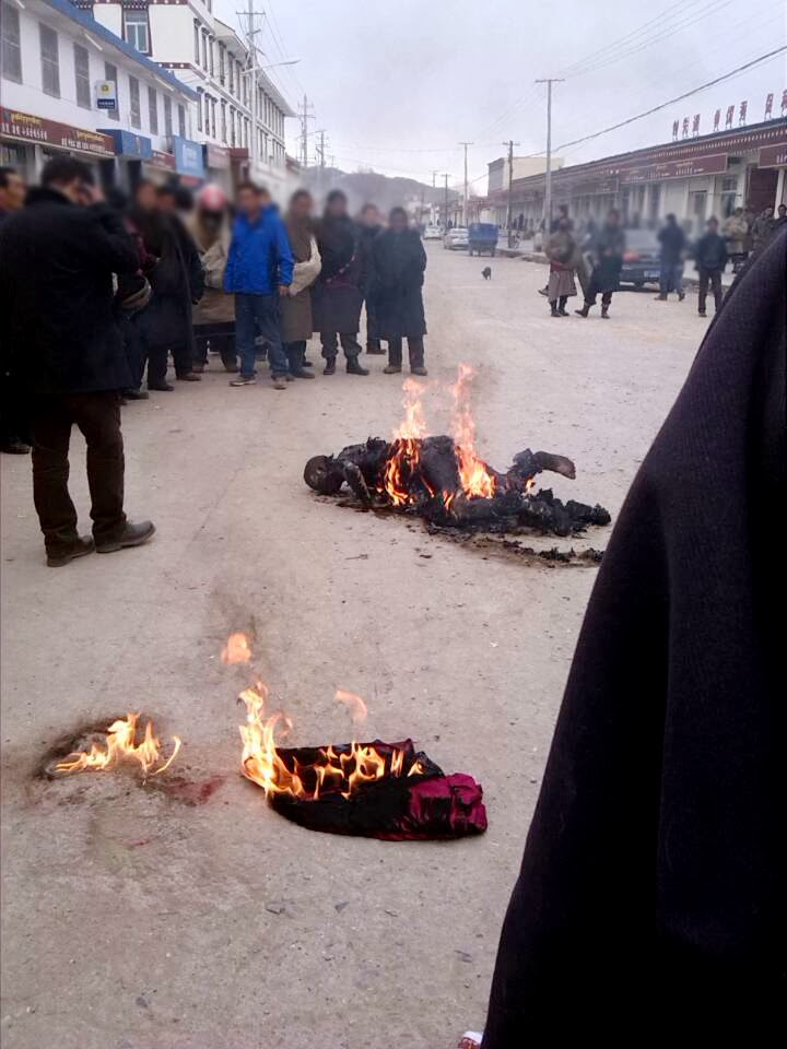 中国政府对自焚藏人定性“自焚违法犯罪行为”,并实行连坐的“严厉打击”方式,一人自焚全家全村全乡全寺被株连,抓捕拘留审讯判刑不一而足,2009年迄今129位境内外自焚藏人,遭连坐达数百人,不但没有扑灭火焰,反倒使火焰还在燃烧。而且,自焚藏人的相关照片不但被无畏的藏人们通过网络传出,他们还用黄绸将今日牺牲的次成嘉措遗体包裹,送回寺院,之后约400多名僧侣为亡者举行了超度祈福法会,目前情况不明。