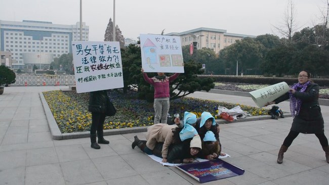 - 上周,一群女性在浙江省政府大门口叠罗汉,呼吁赋予女性平等的经济权益。