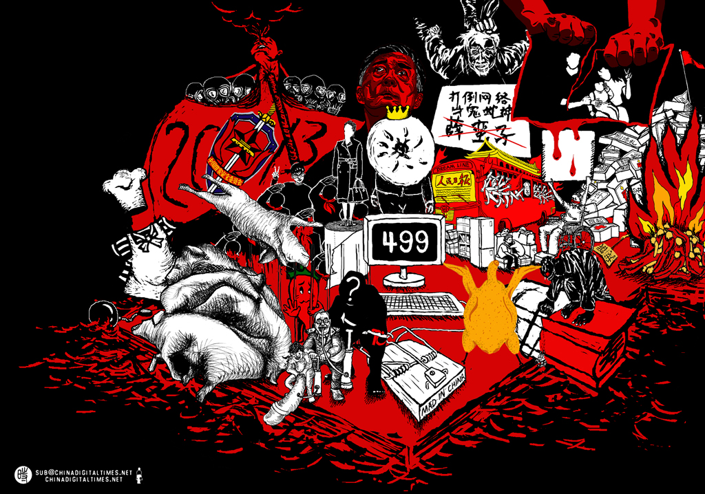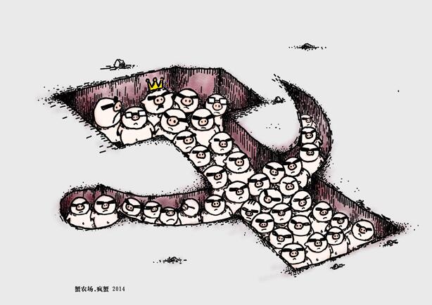 2014年到来之际,不少时政漫画用画笔回顾了2013大事件,例如漫画家巴丢草将自己2013年部分描绘时政热点的旧作合成了一幅大图。例如漫画家邝飙画下了自己心目中2013年的最终大事件:薄王事件。例如漫画家秃头倔人用抽象的笔触描绘了2013年给自己带来的一种绝望感:末路残阳。例如沉寂已久的漫画家蟹农场再度发表犀利的时政批评作:为“地下党”添坟…….当然,有不少漫画家并未对此发表新作,而是将自己一些代表作汇总发出,其中绝大多数作品数字时代已在往期的“一周网络漫画选摘”加以收录,遂不再放出。