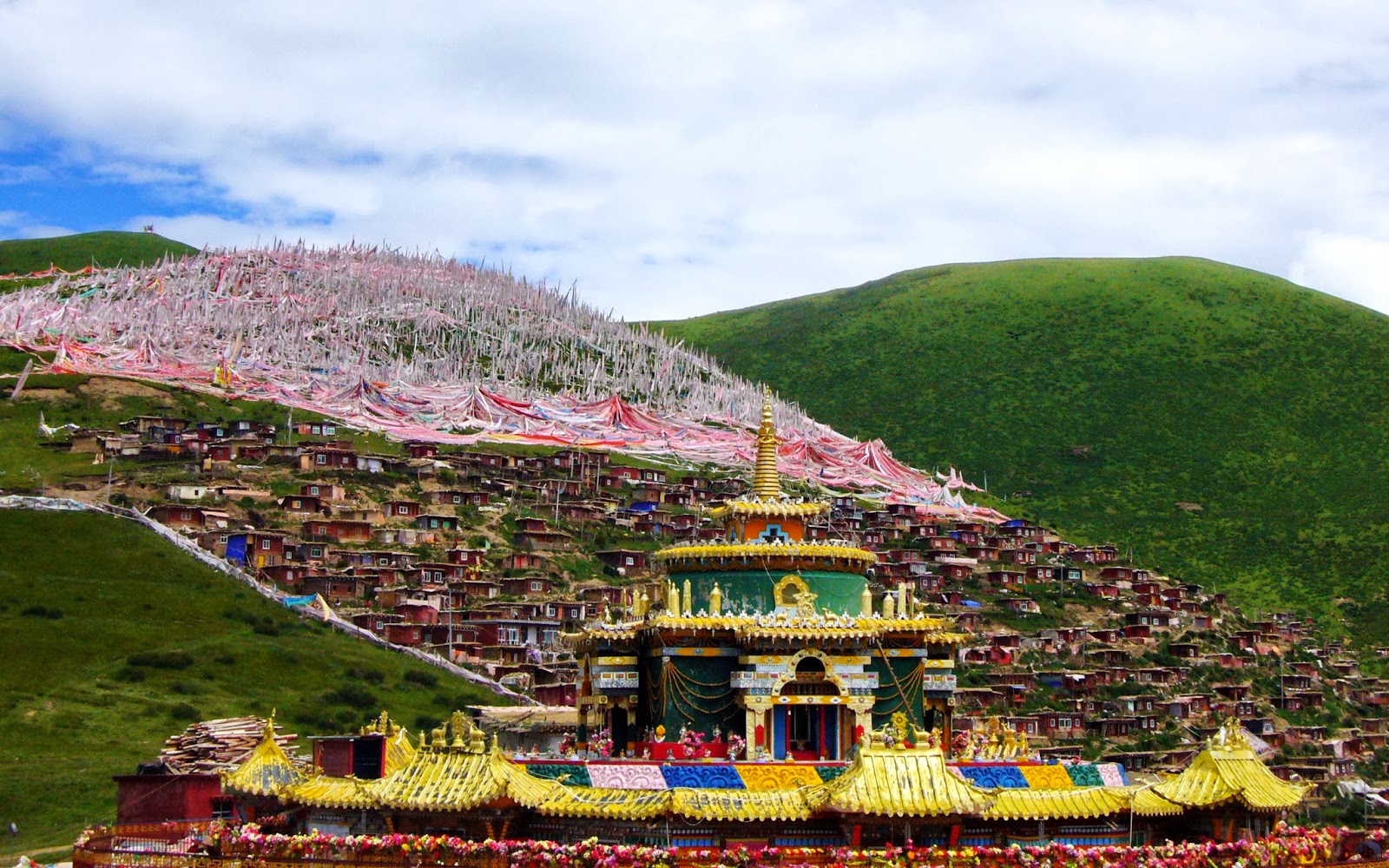 距离色达县城(位于今四川省甘孜藏族自治州)二十多公里的喇荣山谷,有一座藏传佛教宁玛派高僧晋美彭措建立的五明佛学院。1980年创办时只有三十多人,到了九十年代末,在那里学习的僧众已近上万人,其中有出家人,有在家人,有喇嘛,有尼姑,还有上千名汉人信徒,从各地前去学习的僧众不断增加。