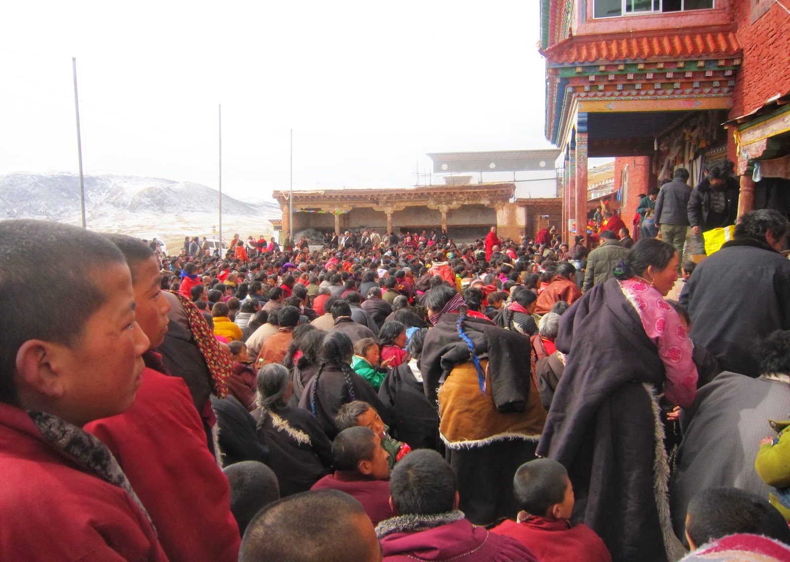 | 以上四张图片为1月15日,囊谦500多僧俗藏人聚集县监狱外,要求当局释放被捕四十多天的堪布尕玛才旺以及为他请愿而被拘押的9位僧人。 |