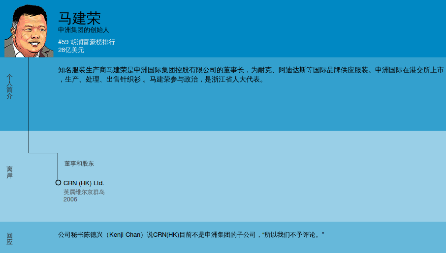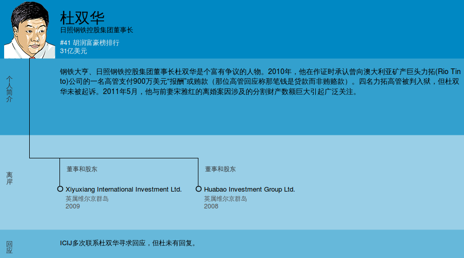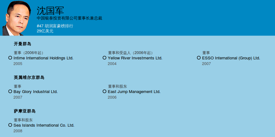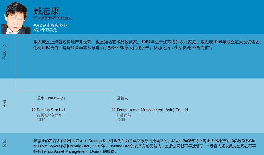 国际调查记者同盟(缩写ICIJ)获得的密件显示,近22,000名中国内地和香港的投资者在离岸金融中心注册公司,其中起码有15名包括富豪、全国人大代表、涉嫌贪污的国企高管等知名人士。