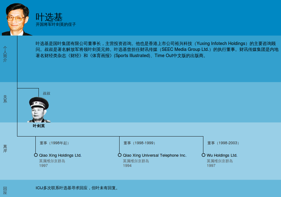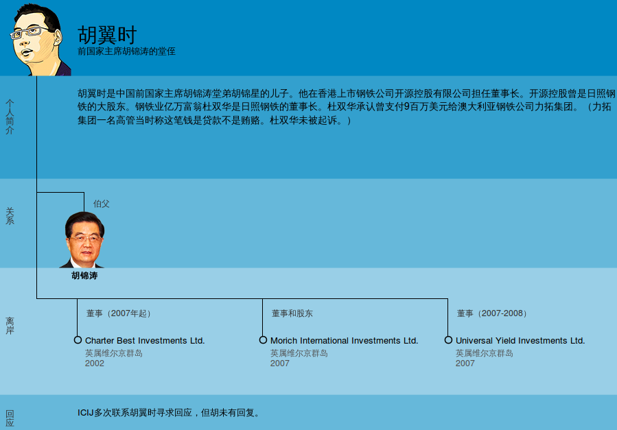 ICIJ还在离岸密件中发现邓小平、李鹏和胡锦涛等中共前领导人的亲属的离岸公司资料,(密件内容可按链接查看 )