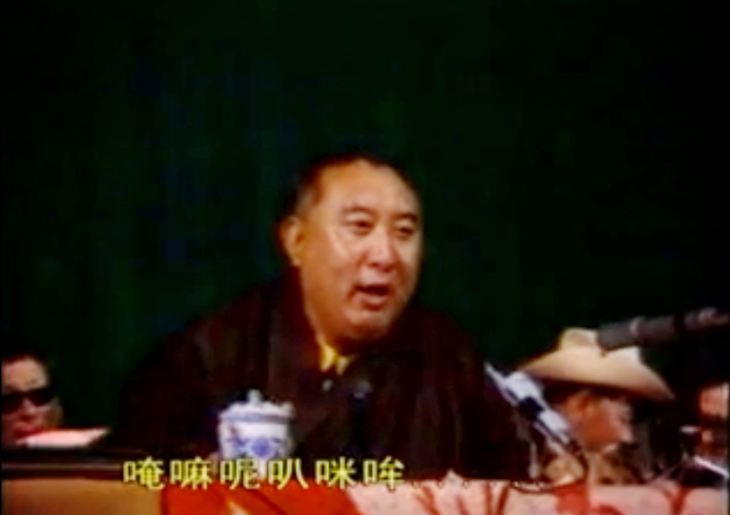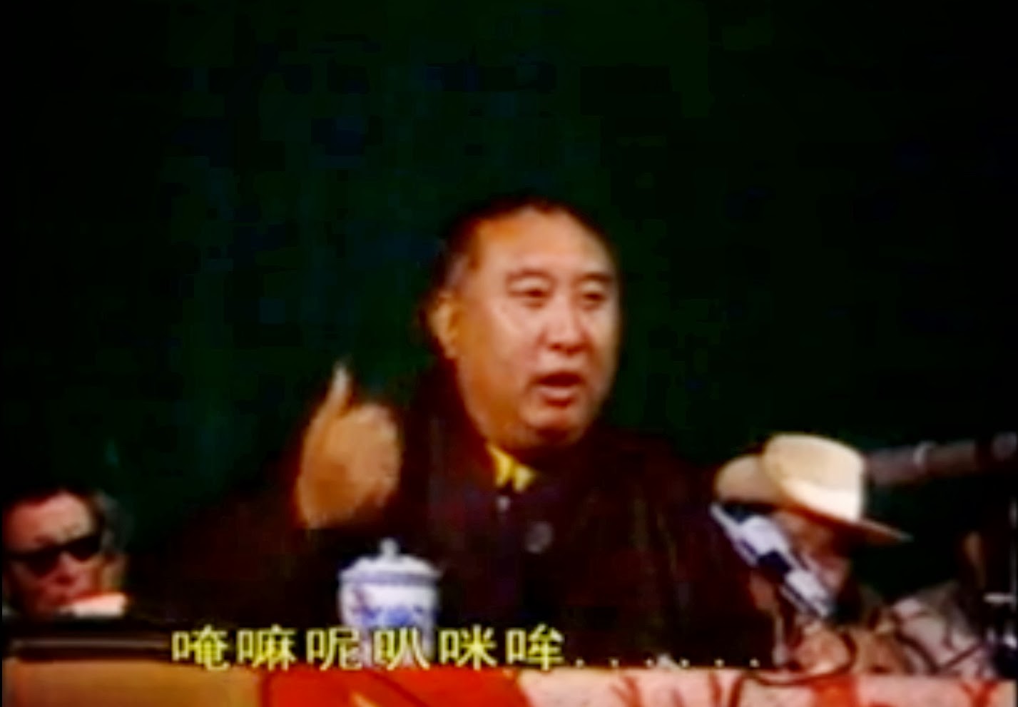 | 这是纪录片《十世班禅大师》中的截图,恰如当年还是高中生的我目睹十世班禅喇嘛在西南民族学院对藏人师生讲话的情景。 |