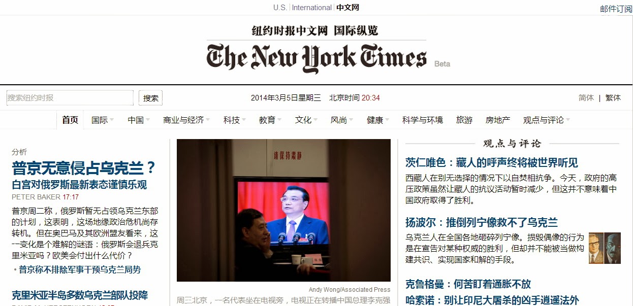 (转自2014年3月5日纽约时报中文网。英文译文见2014年3月The New York Times)