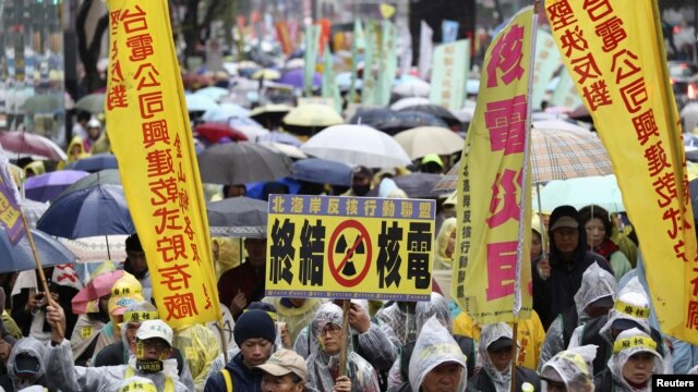 星期六(3月8日),台湾大约13万人在日本福岛核电站出事三周年之际冒雨上街游行,要求关闭台湾现有的三个核电站,取消启用第四个核电站的计划,但台湾政府看来主意已定。