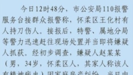 据北京警方媒体发布的通报报道,怀柔区王化村一名男子因家庭财产纠纷,持刀在村里扎死扎伤多人。警方接到报警后赶往现场,控制了嫌疑人。犯罪嫌疑人的家人说,行凶男子有精神病史。目前警方正在对事件进行调查。