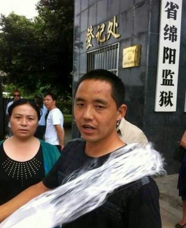 这是入狱三年的藏人作家尕藏金巴于2013年7月18日出狱情景。