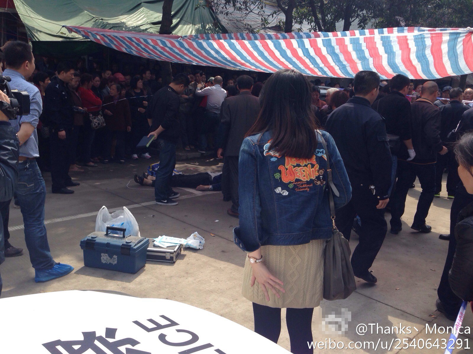事发当天,两个协管员不让这位妇女在此摆摊,说那里禁止摆摊,还用脚踹了这位妇女的鱼丸摊。