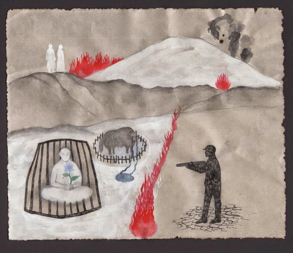 | 一直用绘画记录、纪念自焚藏人的日本艺术家Tomoyo Ihaya的画。 |