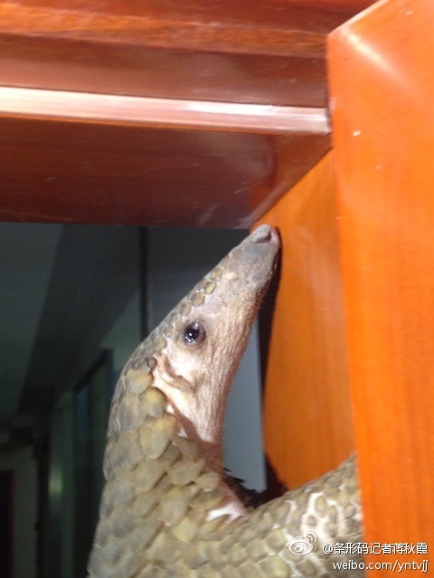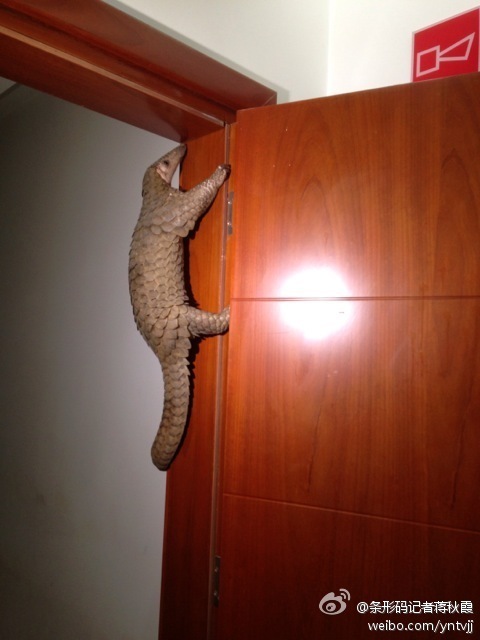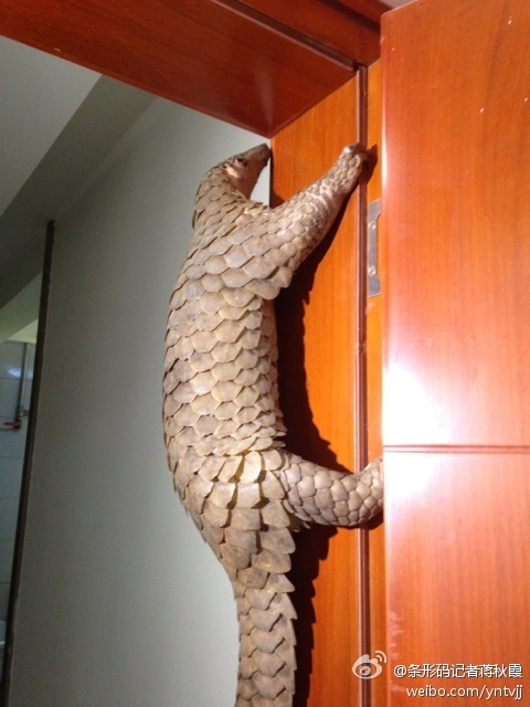 【图说天朝】穿山甲的眼泪 2014年5月15日 @条形码记者蒋秋霞:【穿山甲的眼泪】今天广东警方查获了上千只穿山甲冻体,就在晚上八点半,梁源派出所在秋苑二期解救了一只穿山甲,由于惊吓过渡,它紧紧的巴在派出所的门上不愿下来,眼中含着眼泪。 所在分类:参考消息,✿图说天朝,网事纷呈标签:濒危野生动物,野生动物,穿山甲,动物保护 相关文章 最人物|毒死小狗获刑4年,Papi妈妈漫长的追凶 不存在雑誌|潘宏是怎么走到了今天这步 槽边往事|虐猫和道德审判 星球商业评论|动物都是好动物 风声OPINION|别让流浪狗成为人之恶的替罪羊