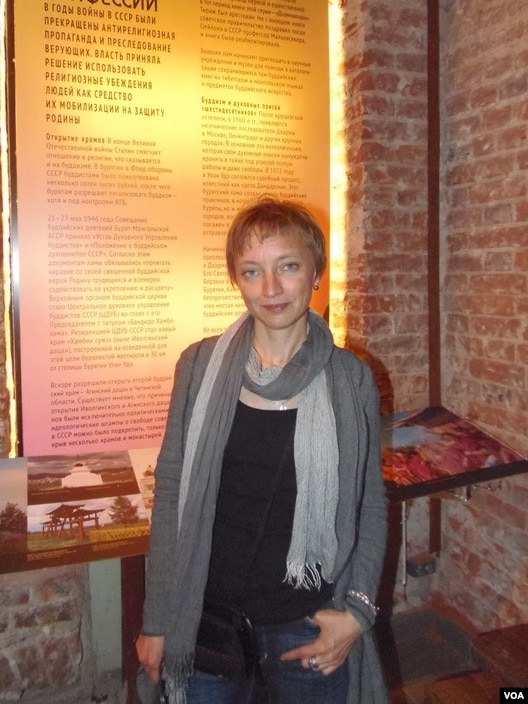 罗曼诺娃:“类似的展览在俄罗斯第一次举办。我们举办过有关佛教文化的展览,在莫斯科还举办过迫害东正教的展览,但迫害佛教的展览还是第一次举办。”