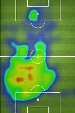 美斯的跑動只有10.71KM,而且他的活動多在中圈(紅色)。