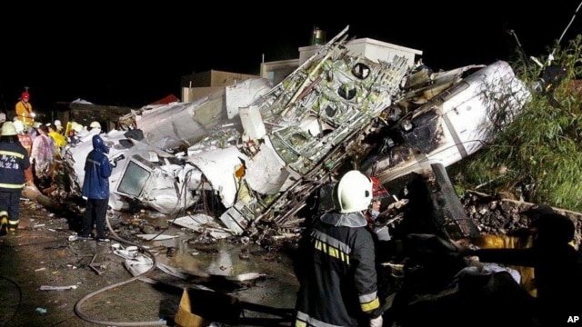 星期三晚间,台湾复兴航空公司的这架客机在澎湖岛马公机场附近第二次迫降时坠毁在一个居民区。