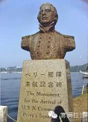 这张图片,是建立在日本神奈川横须贺的美国海军准将佩里的铜像,铜像上是伊藤博文的题字:北米合众国水师提督佩里上陆纪念碑!日本人有感佩里促使日本开放改革,走上富国强兵之路,视之为日本的恩人,每年都要在这里举办盛典,称为黑船祭。