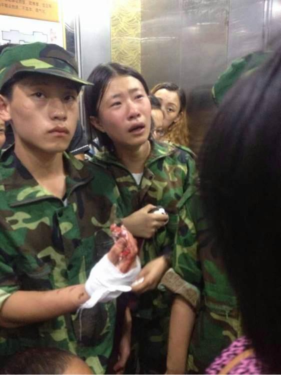 腾讯微博的网友称,8月24日上午,新生军训休息时,某班学生曾与一教官打闹,下午训练时,该教官体罚该班学生做俯卧撑,有学生坚持不了,教官便用脚踩。班主任上前说情,却被教官殴打。学生们见状,集体和教官对抗。多名教官随即参与互殴中,局面失控,一片混乱。