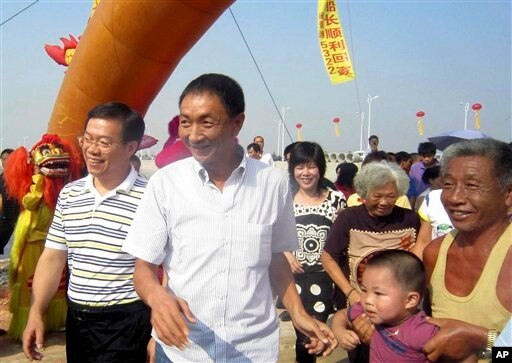 2010年9月27日,与日本巡逻船相撞的中国拖网渔船船长詹启雄(中)被日本释放后在福建家乡受到欢迎*少有的联合调查*