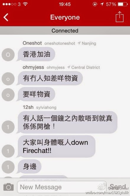 安装了Fire Chat,这个无需网络,利用蓝牙和Wifi功能(不需连网)连接用户手机的App被香港人占领了。酷 pic.twitter.com/bj58vdUrCZ