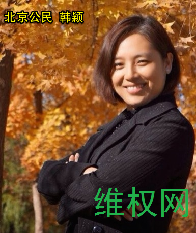 韩颖,女, 1973 年出生, 住北京市海淀区,韩颖因拆迁而走向维权之路,通过十年的维权,经历了各种司法不公,她关注征地拆迁维权,关注儿童权利; 2011 年北京市人大代表选举时是著名的独立参选人,很多媒体曾经进行报道。