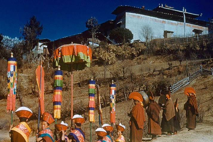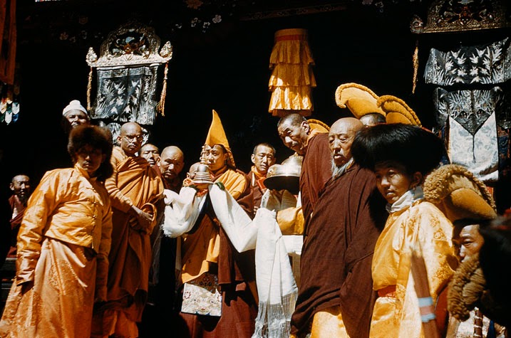 Monks and nobles prepare for the arrival of the Dalai Lama at Dungkhar Monastery, in Chumbi. Each place the god-king slept on his trek immediately became a consecrated chapel, where no mortal man may ever again dwell.