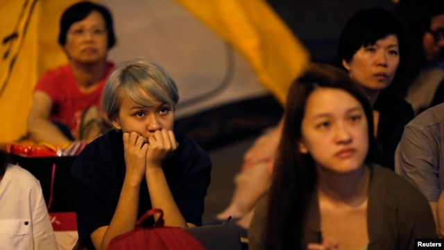 香港学联领袖岑敖晖说,他感到震惊的是政府仍然要求学生们接受北京对2017年香港选举的规划。他说,“我无法相信政府仍然坚持要我们首先接受这个规划,仍然要我们遵照人大常委会的选举大纲。政府没有表现出任何要解决政治问题的勇气和诚意。”