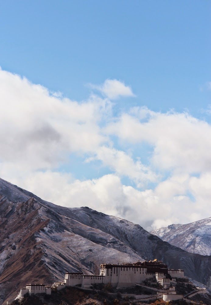 白雪覆盖了环绕拉萨的经典所称如八瓣莲花的群山(而今实则只余七瓣,另一瓣已被开矿削掉),颇章布达拉(颇章:藏语,意为宫殿)示现永恒之美。